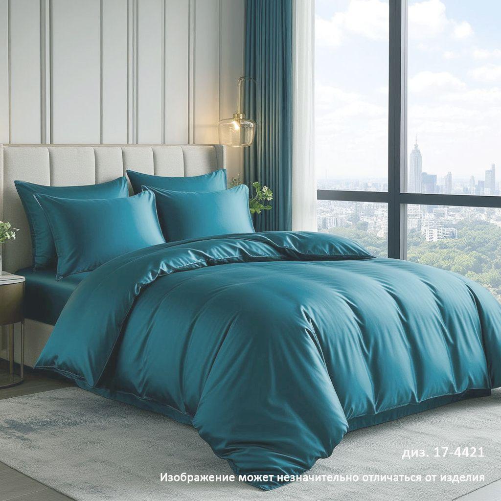 Комплект постельного белья Семейный Сатин Luxor диз. 17-4421 Темно-бирюзовый (N)